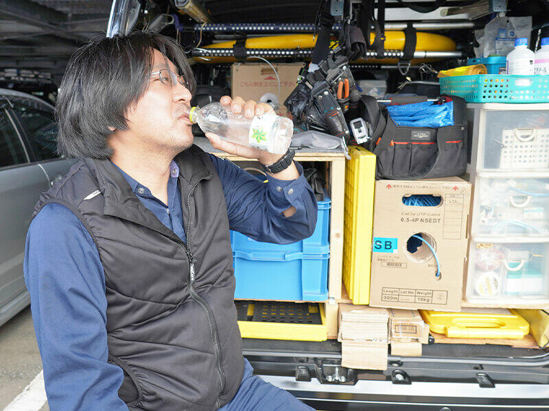 また、島嵜様は「屋内での工事が多く、冬でも熱中症になってしまうことがあるので一年中便利に使えています。余った分は翌月に繰り越して使えるので使い切らなくてもいいという安心感もありますね。以前は、購入した分を月末に経費精算していたのですが、領収証などの管理や精算作業の手間もなくなったので、大変便利になりました」と言う。