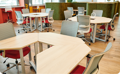 新しい学びを実現する教室や働きやすい職員室など、空間づくりで「選ばれる学校」に向けた魅力化を支援。