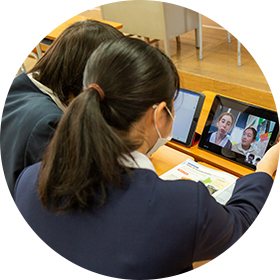 福山暁の星女子中学校・高等学校では、例年、15人ほどがニュージーランドの姉妹校へ短期の海外留学をしていた。新型コロナウイルスの影響により海外渡航ができない状況下でも、2020年度から高校3年生以外の中・高5学年に1人1台のタブレットを導入したことで、国際交流が手軽に、全員が体験できる機会が生まれた。Web会議システム「Zoom」を使用し、互いの文化や興味について英語で会話する。青木薫代校長補佐は、「生徒が実際に現地へ行くことも大変貴重な経験ですが、限られた生徒だけが体験するよりも、費用をかけずに全員が体験できるという点が素晴らしい」と喜んでいる。