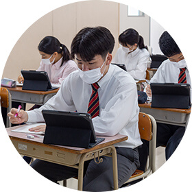 また、各種授業動画が見られる「スタディサプリ」を導入し、生徒が自主的に個別学習できる環境を整備。病気や部活動の遠征などで出席ができない場合でも、その部分の学習を補うことができる。授業の復習から、その先の試験対策まで幅広くカバーし、学力の向上を目指している。