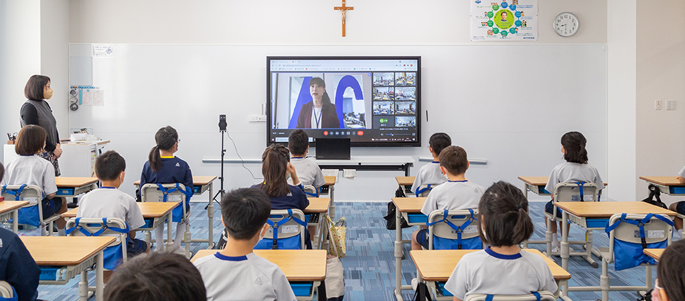 2021年8月、静岡サレジオ小学校(プライマリー・ステージ)の新校舎が完成した。ホワイトボードの中央には86インチの電子黒板が固定されている。電子黒板は、旧校舎では黒板の補助的な存在だったが、新校舎では中央に設置し、教室のメインとした。電子黒板を中央にした理由について末吉 弘治理事長は「大型モニターならクラス全員から文字が見えるということと、電子黒板に教員や生徒からの情報をたくさん提示し、その情報を整理していきたいから教室の中心にしました」と話す。その両サイドのホワイトボードには、要点や基礎情報などを書き理解を促すという。