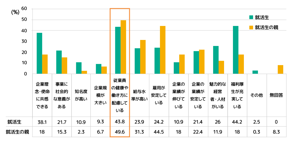 就活生とその親の約半数が「従業員の健康や働き方に配慮している企業」を重視