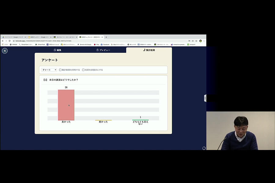 この機能は、これまであまり発言しなかったような生徒がどのように考えているのかがわかるという効果もあるという。さらに、選択した数人の回答だけを表示し画面配信をすれば参加者の画面に強制的に見せることも可能だ。