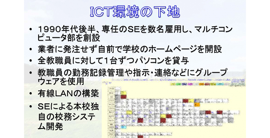 一人一台のタブレット導入までの 学校のICTに関わる下地