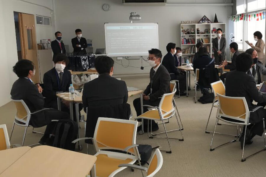 授業紹介後、参加学校の教職員の皆さまに北鎌倉女子学園の4名の先生方も交え、質疑応答・情報交換をする交流会を実施いたしました。