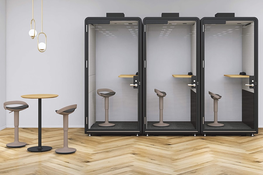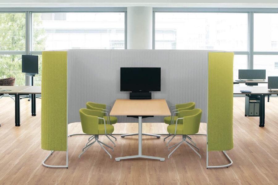 オンライン会議の快適性についても課題になっている企業が多くあります。周りの声が相手に聞こえてしまう、自分の声が周りの迷惑になってしまう、背景に人が写り込んでしまうなどが主な課題です。快適性を高めるためのオンライン専用ブースを導入するという方法があります。