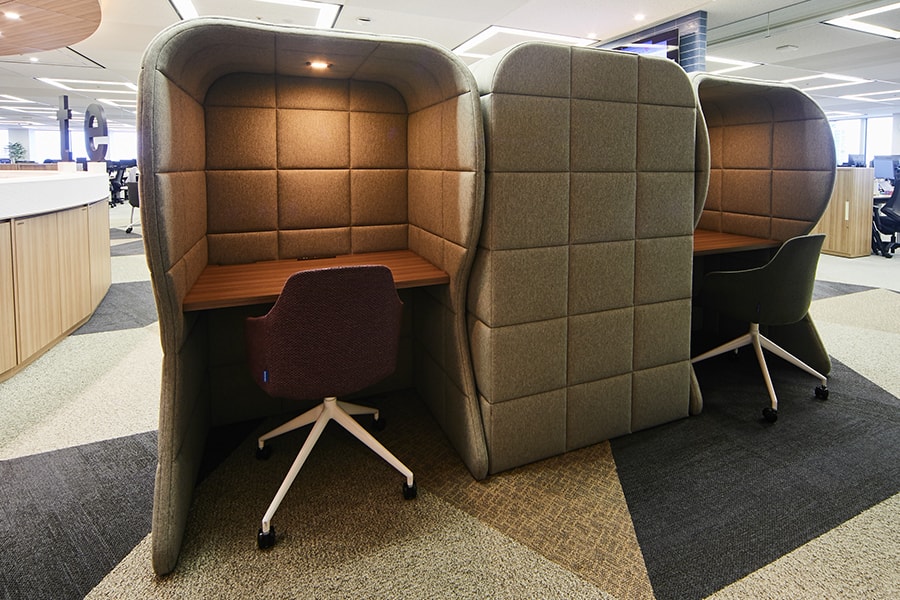 一人で完全に集中して行う作業には、個室や半個室として独立したブースなどが適しています。