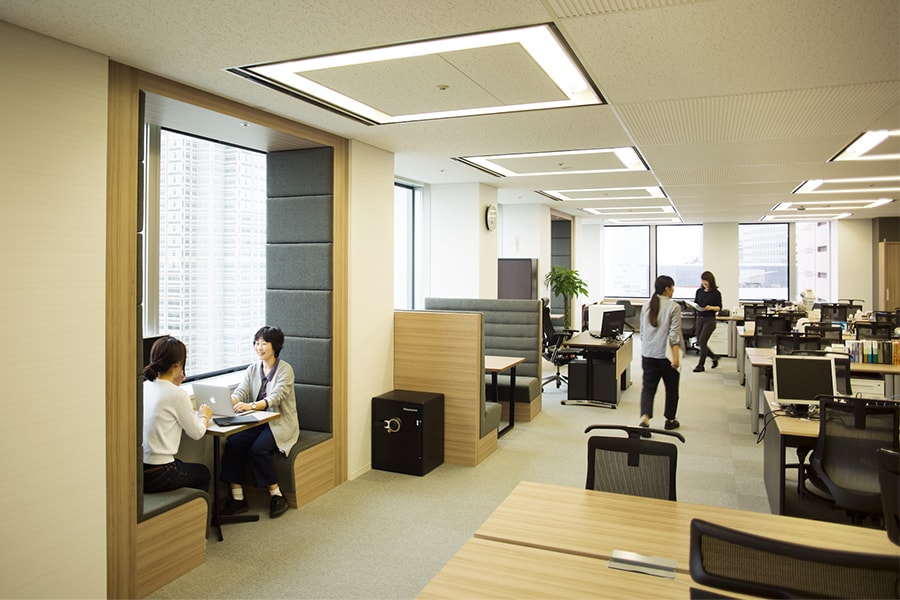 一方で、会話をはさみつつ行う作業には、カフェのようなオープンスペースを設置するのも一案です。