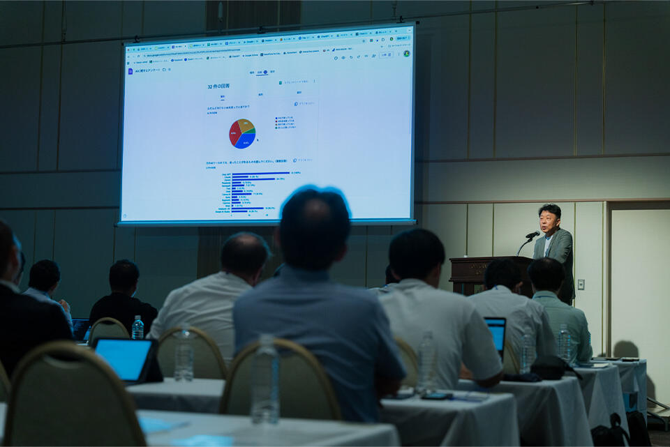 アンケート結果から参加者のAI活用状況を共有する和田氏