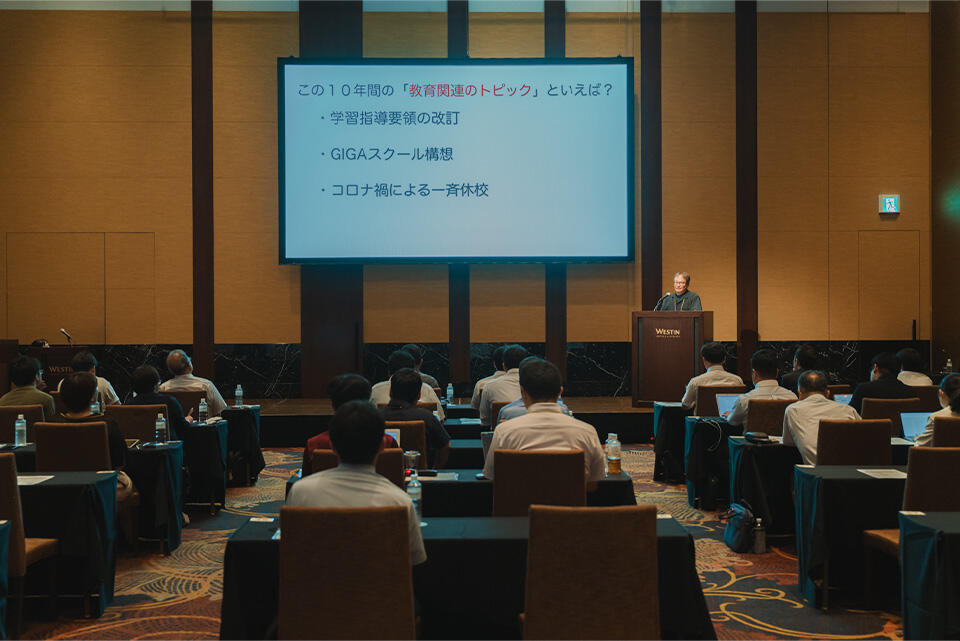 まず過去10年間であった教育関連の大きなトピックについて話題に出し、学習指導要領の改訂やコロナ禍、生成AIの普及などを挙げた。