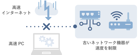 高速なPCに入れ替えても、そこからインターネットまでの機器が古いことで速度が制限されている可能性があります。