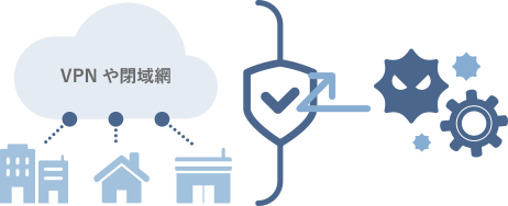 オフィス外や自宅から社内情報へのアクセスを行う際には、VPNや閉域網などによる環境整備が必要です。適切に設定をされていないパソコンやネットワークの利用は遅延などによる業務効率の低下だけではなく、盗聴などによる情報流出などのリスクを抱えることになります。