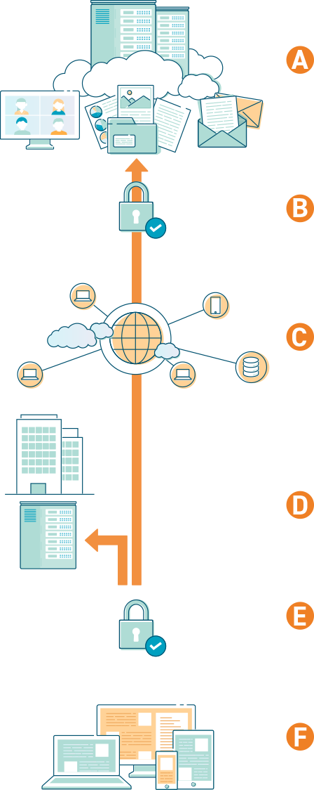 クラウドへの経路は社内ネットワークによって一括で守られます。