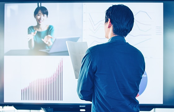 WEB会議なら離れたオフィスのスタッフとも気軽にコミュニケーションが取れ、円滑な業務進行を実現できます。