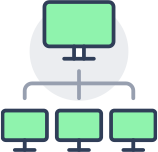 - 社外から社内へのアクセスや、複数拠点からのアクセス、インターネット接続時のセキュリティまで、拡張性と統合性に優れたネットワークサービスで、ハイブリッドな働き方を実現します。