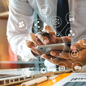 業務用にスマートフォンなどのデジタルデバイスを用意したら、次に行うのはインターネットを介したクラウドサービスの活用です。クラウドを活用することで、全社的に業務効率化、生産性の向上を実現しましょう。これにより、外回りの多い営業担当は直行直帰が可能となる、出社が難しい社員は在宅で仕事ができるなどといったさまざまな効果があります。